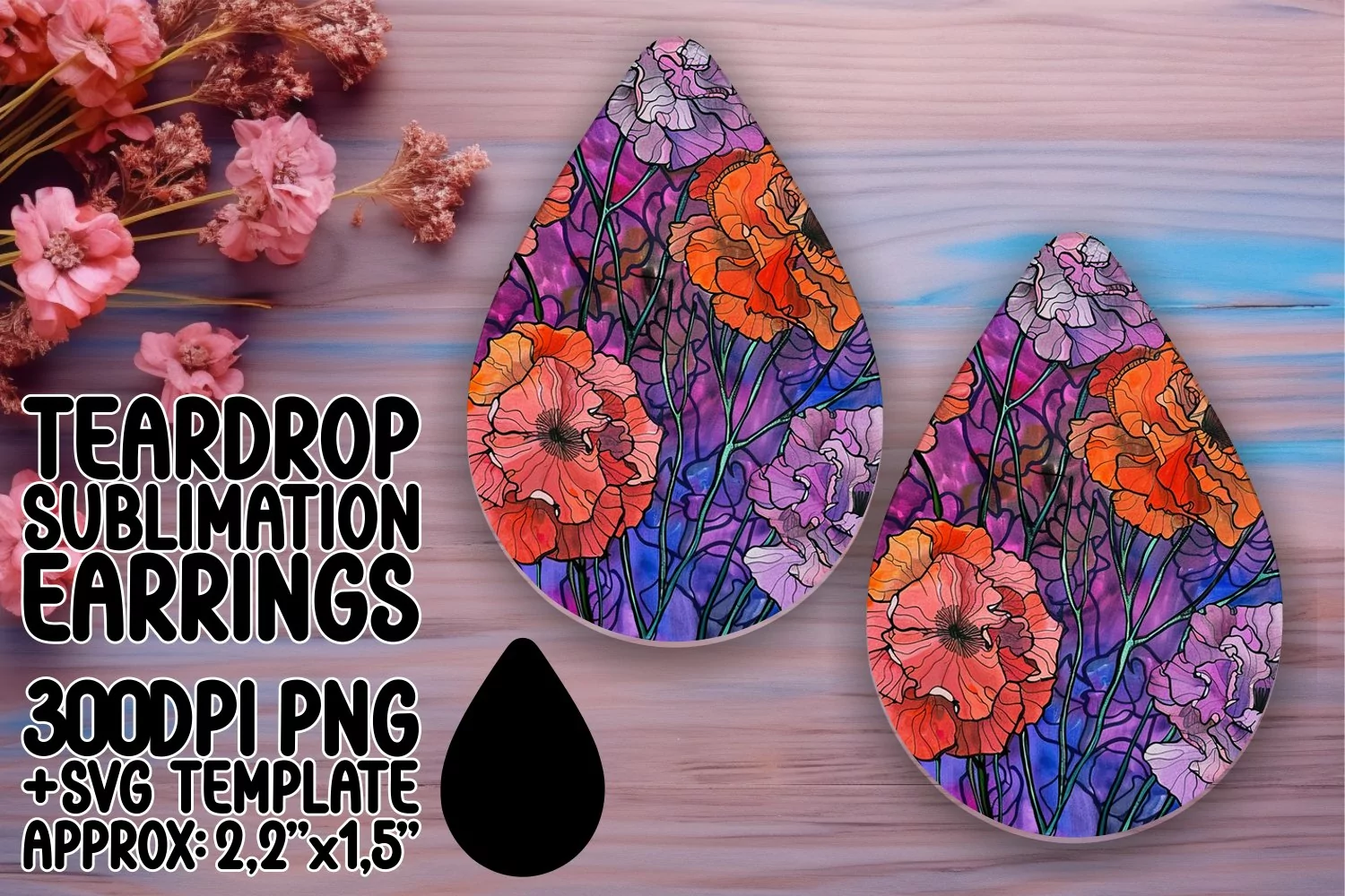 Similar Design Products to Colorful Floral Teardrop Earring Sublimation PNG