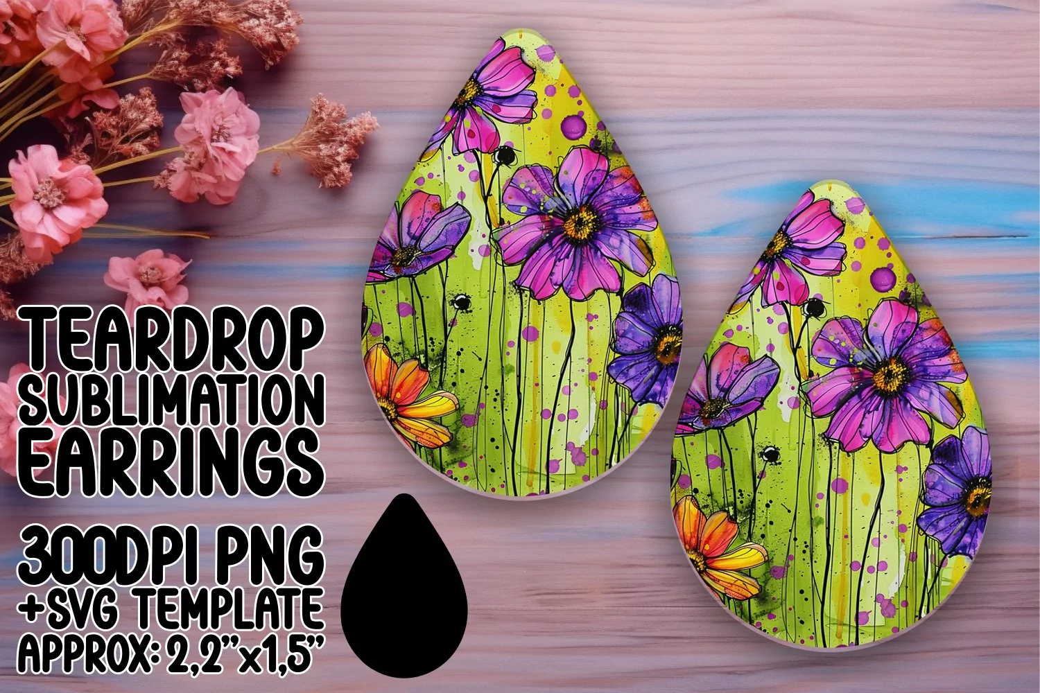 Watercolor Flower Flower Pattern Embroidery Pattern Sublimation Design Teardrop Earrings Teardrop Earring Png Teardrop Sublimation Teardrop Earring Sublimation Design 3d Earrings Sublimation Teardrp Earrings Template