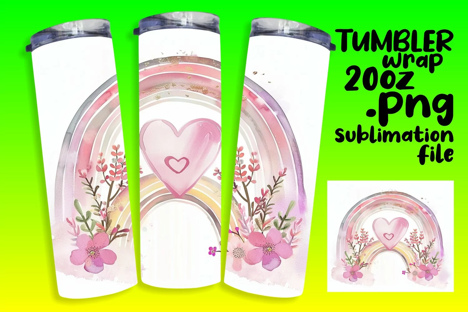 Vibrant 20oz Tumbler Wrap with Rainbow Design example image 1