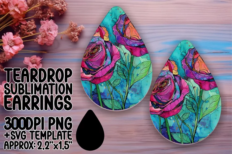 Watercolor Flower Flower Pattern Embroidery Pattern Sublimation Design Teardrop Earrings Teardrop Earring Png Teardrop Sublimation Teardrop Earring Sublimation Design 3d Earrings Sublimation Teardrp Earrings Template