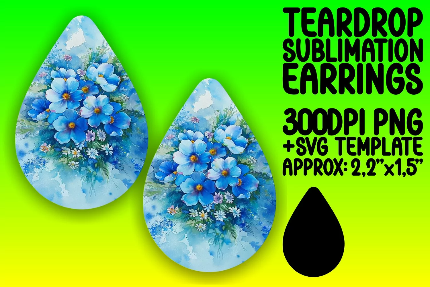 Sublimation PNG - Floral Teardrop Earring Design example image 1