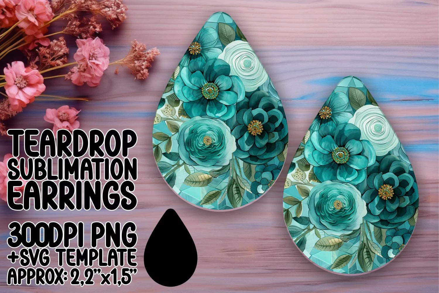 Sublimation Design for Teardrop Earrings - Flowers