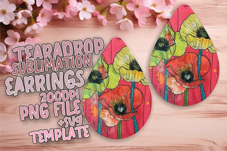 Floral Teardrop Earring Sublimation PNG Design example image 1