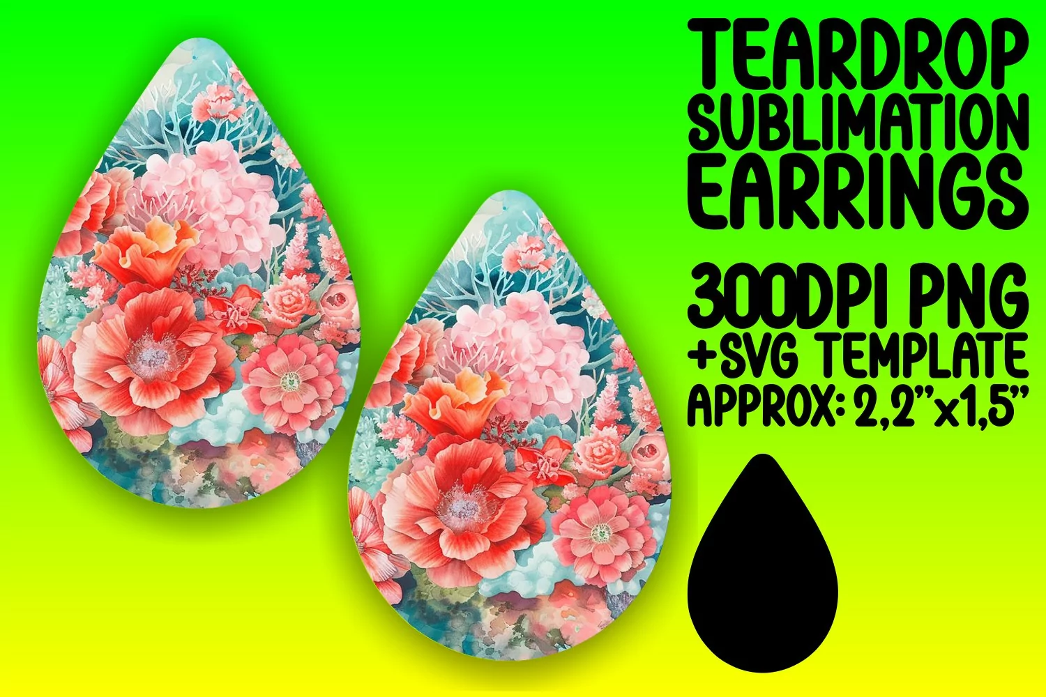 Watercolor Flower Flower Pattern Embroidery Pattern Sublimation Design Teardrop Earrings Teardrop Earring Png Teardrop Sublimation Teardrop Earring Sublimation Design 3d Earrings Sublimation Teardrp Earrings Template