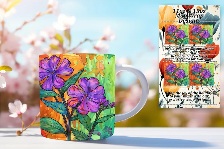 Vibrant Floral Mug 11oz/15oz Wrap Sublimation Design