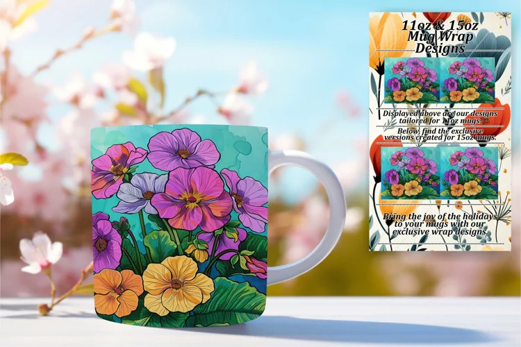 Floral Mug Wrap 11oz/15oz Design Sublimation PNG