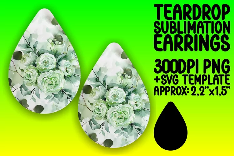 Floral Teardrop Earring Design - Sublimation PNG example image 1