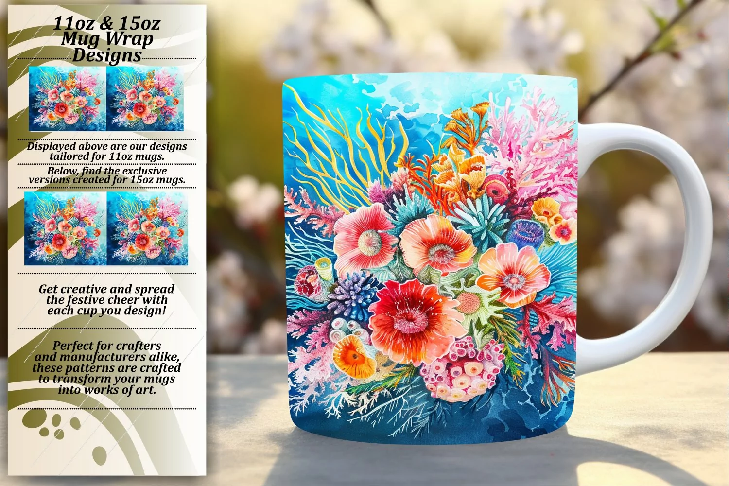 Sublimation PNG 11oz/15oz Mug Wrap Floral Design