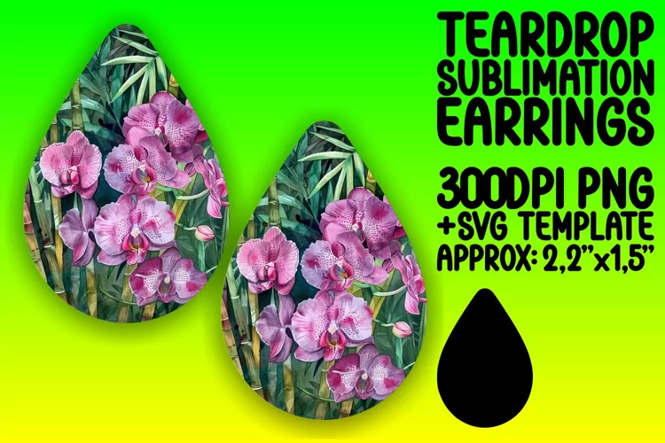 Teardrop Earring Design - Floral Pattern Sublimation example image 1