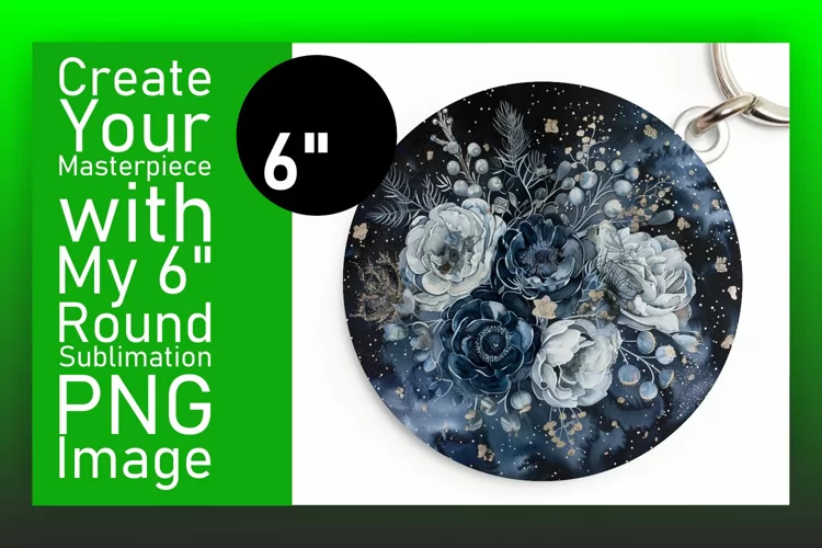 Floral Pattern Round Keychain Design Circle Sublimation example image 1