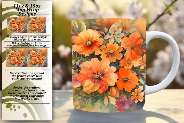 Floral Mug Wrap 11oz/15oz Pattern Bright Design