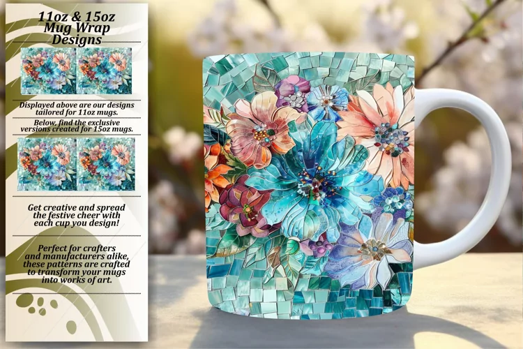 Floral Pattern Mug 11oz/15oz Wrap Design Sublimation