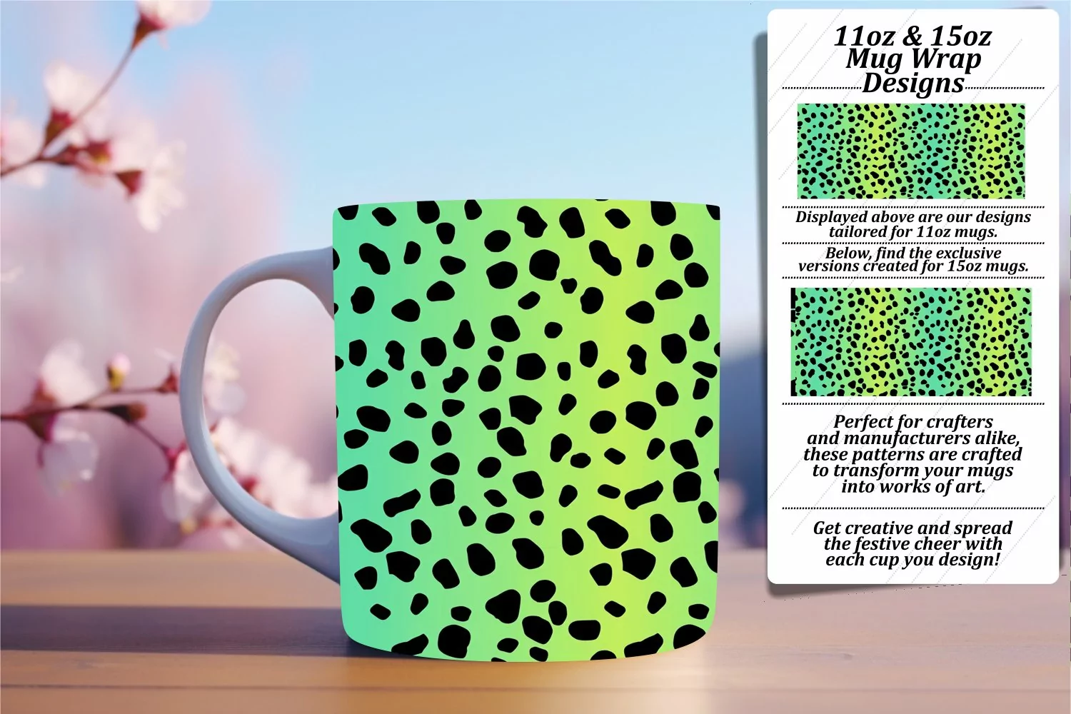 • PNG file for an 11oz mug, dimensions 8.5 x 3.5 inches, 300dpi.