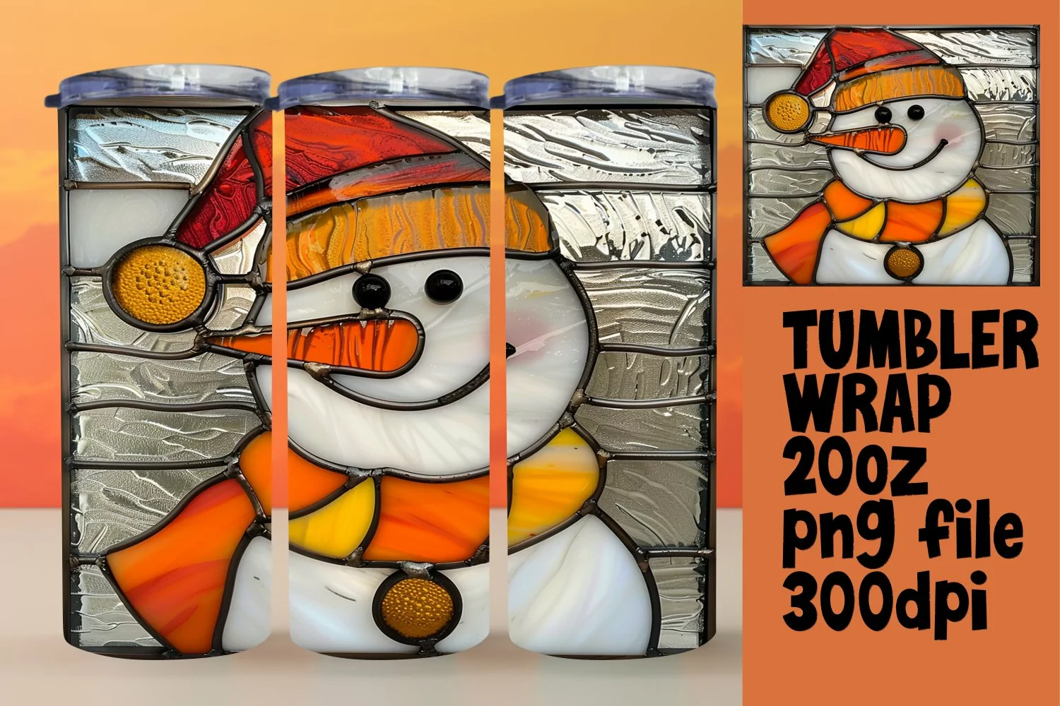 3D Stained Glass Snowman Tumbler Wrap Holiday example image 1