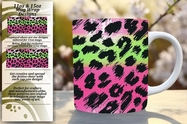 Bold Glittery Leopard Print Mug Wrap 11oz/15oz