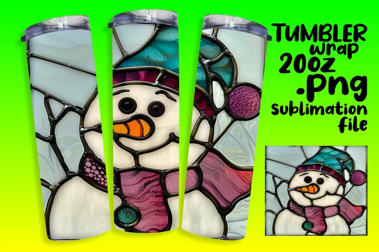 Christmas Snowman 3D Stained Glass Tumbler Wrap example image 1