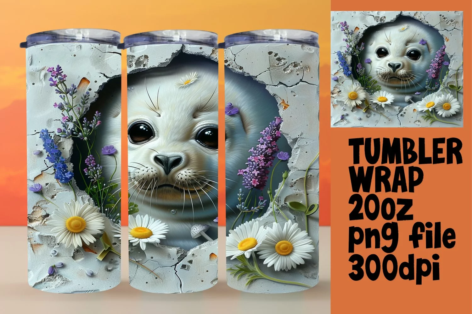 Cute Animals and Flowers in 3D Hole Wrap for Tumbler example image 1