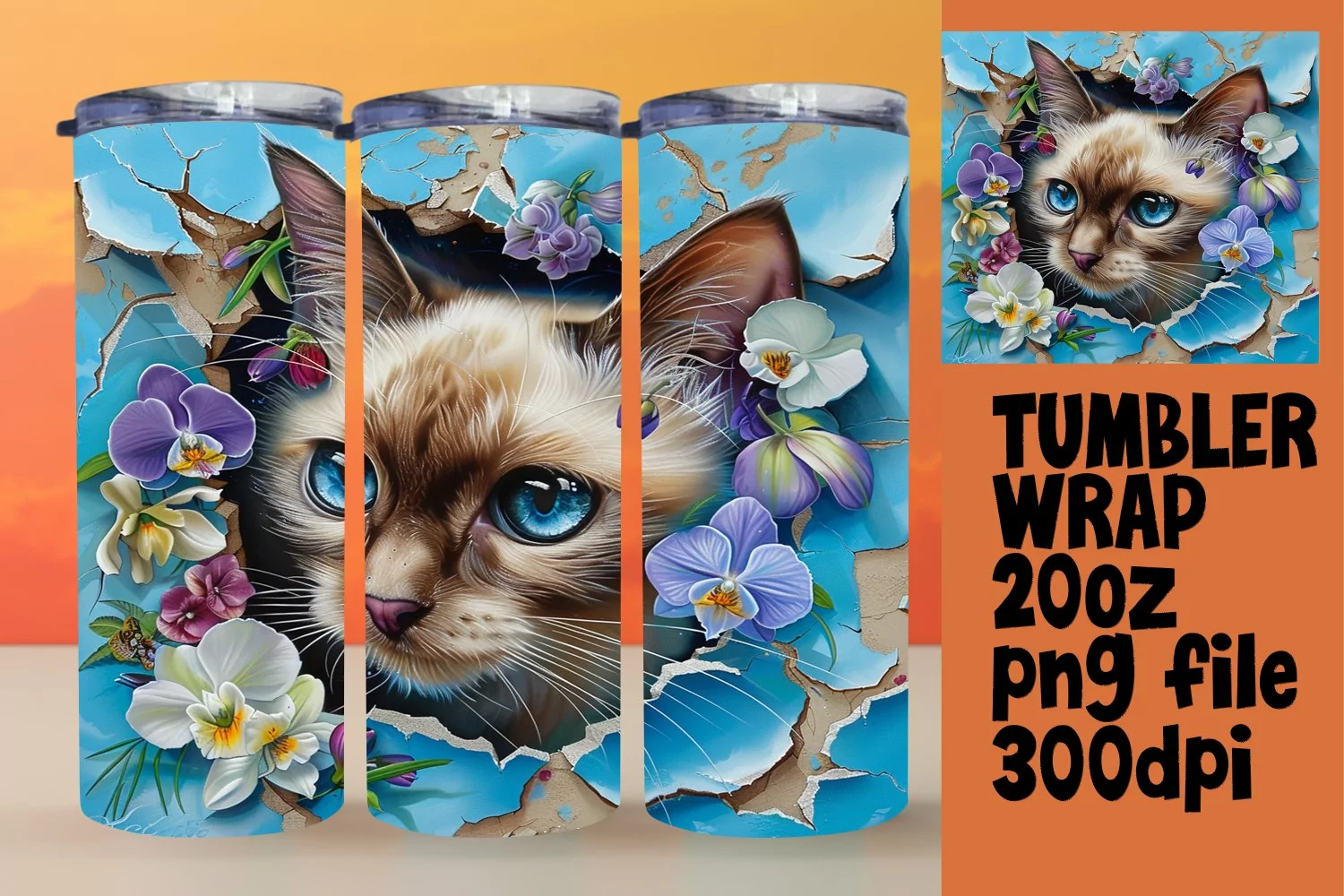 3D Hole in Wall Wrap: Spring Animals & Flowers for Tumbler example image 1