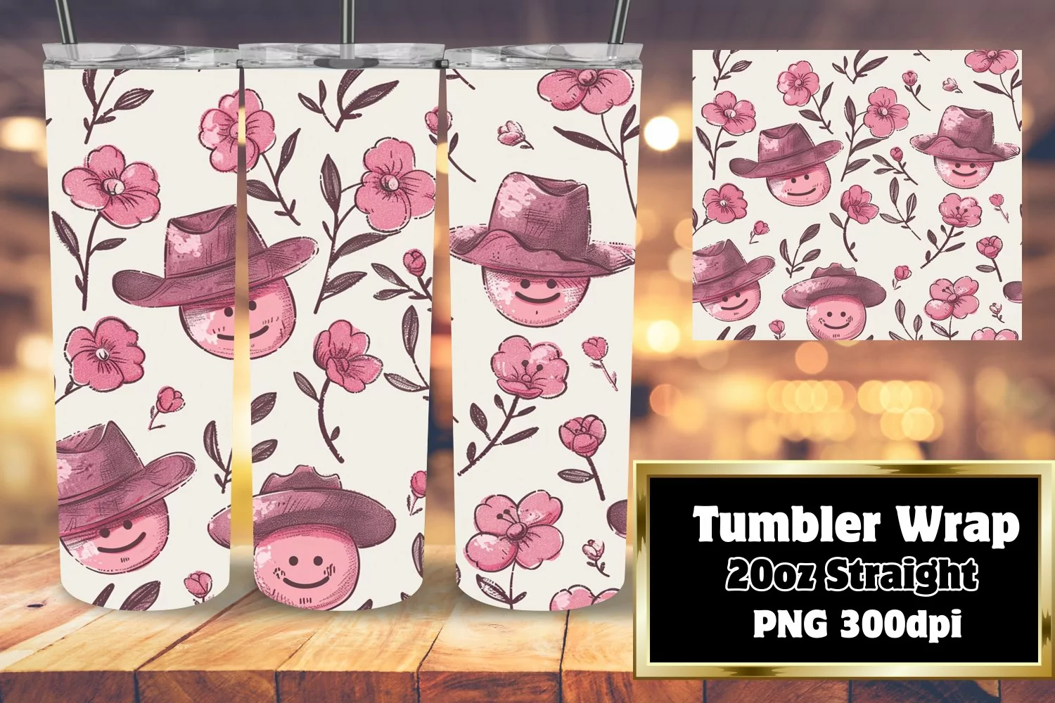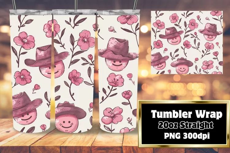 Retro Floral Smile Pattern Tumbler Wrap Art 20oz