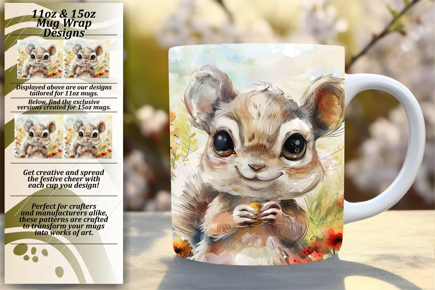 Animal and Bloom Mug Wrap Designs 11oz/15oz