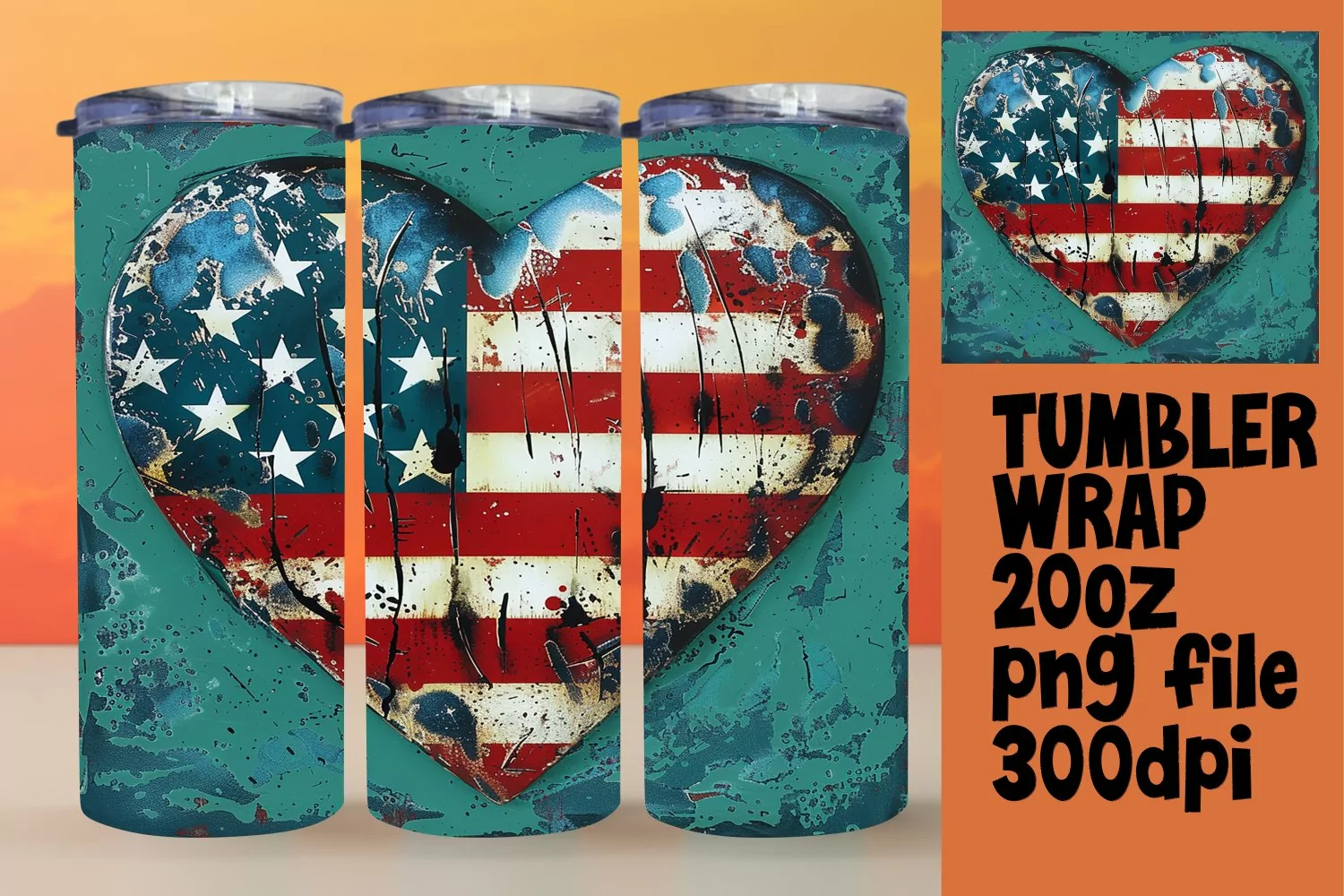 American Flag Tumbler Wrap Watercolor Sublimation example image 1
