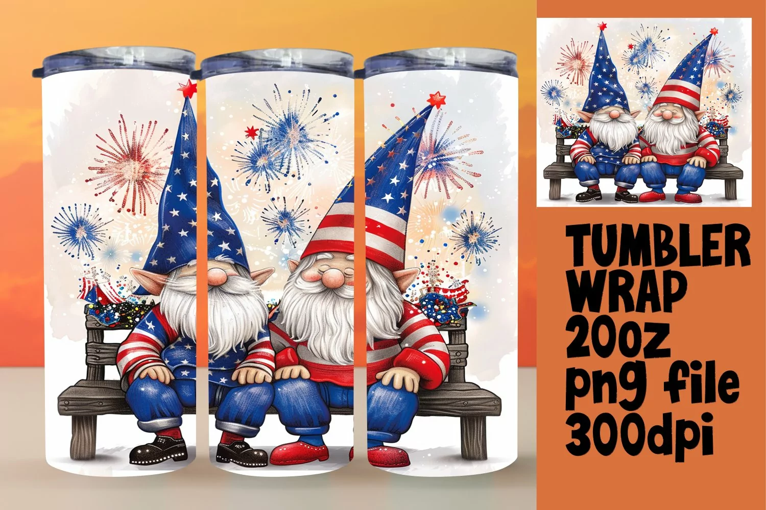 Patriotic Gnome Tumbler Wrap for 20oz example image 1