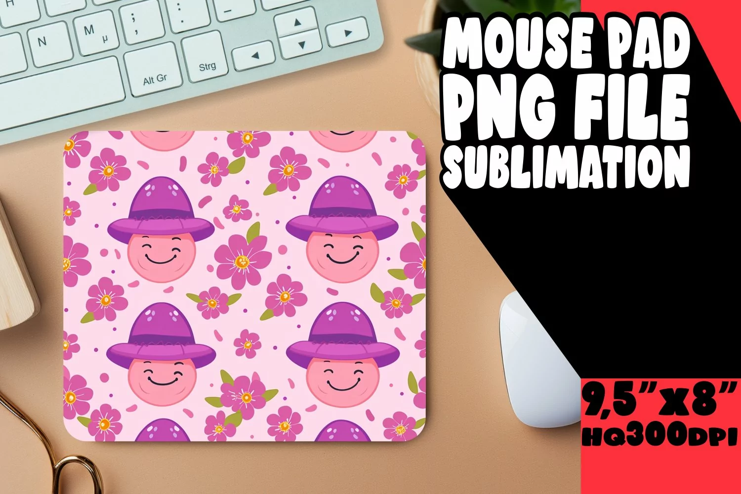 Flower Mouse Pad with Smile Pattern PNG example image 1