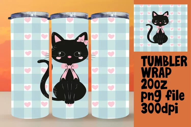 Cat Clipart Sublimation Design Cat Lover Png Black Cat Sublimation Straight Tumbler Skinny Tumbler Wrap Cat Tumbler Wrap Kitty Tumbler Wrap 3d Cat Sublimation