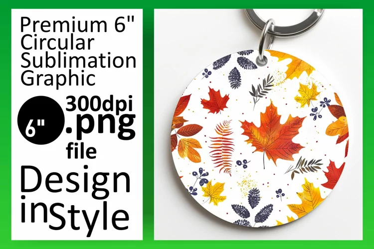 Autumn Pattern Leaf Pattern Round Ornaments Sublimation Design Sublimation Printing Car Coaster Keychain Sublimation Heart Keychain Abstract Art Sublimation Autumn Watercolor Pattern