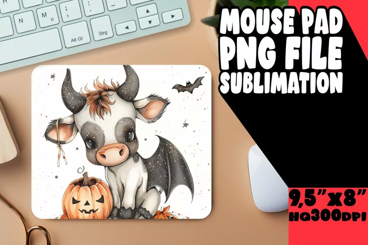 Cute Halloween Cow Mouse Pad Art Design example image 1