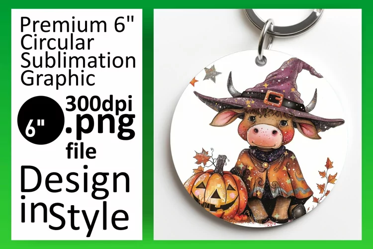 Halloween Cow Round Design for Keychain Tumblers