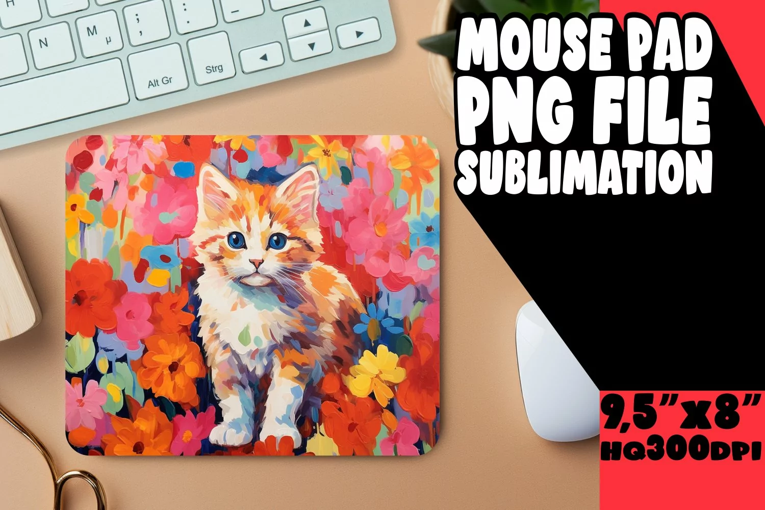 Colorful Cat with Flowers Mouse Pad Design PNG example image 1