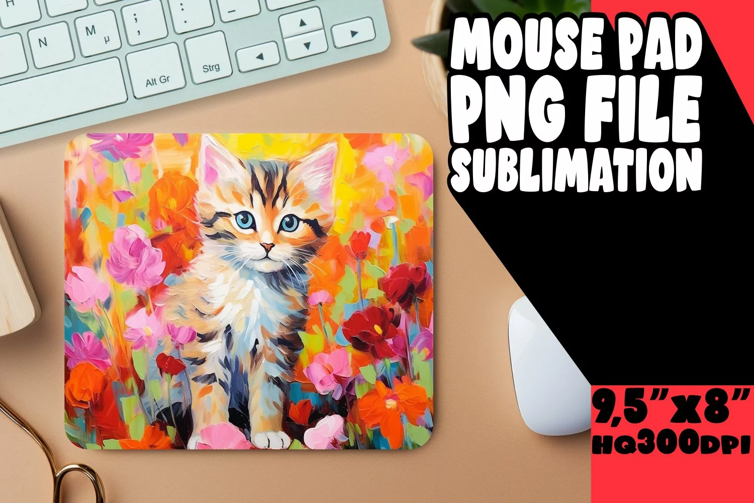 Sweet Cat in Flowers Mouse Pad Design PNG example image 1