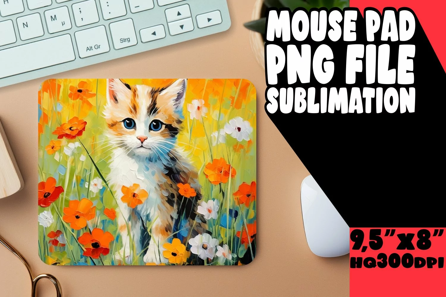 Vibrant Color Cat and Flower Mouse Pad PNG example image 1