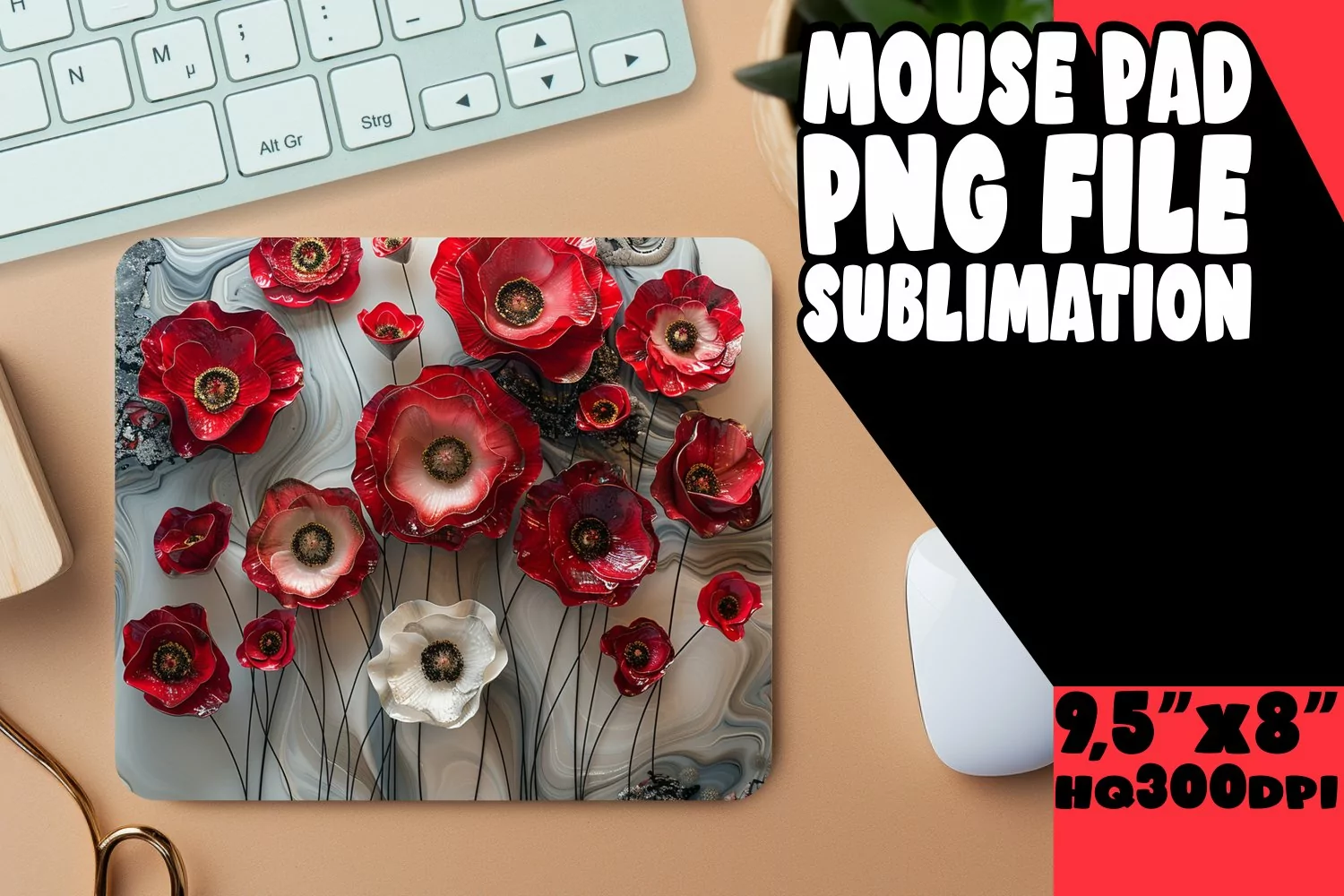 Premium 3D Marble Flower Pattern Sublimation Mouse Pad