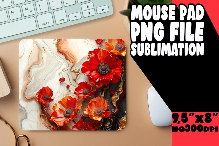 Marble and Flower 3D Mouse Pad Design Sublimation
