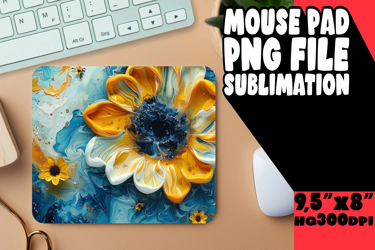 Beautiful 3D Marble and Flower Mouse Pad Design example image 1