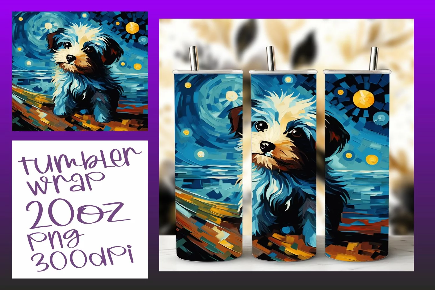Dog Art Tumbler Wrap for 20oz Sublimation Projects