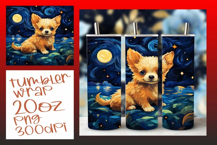 Dog Art Tumbler Wrap - 20oz Sublimation Art