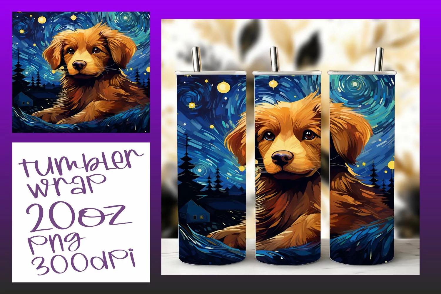 Dog Art Tumbler Wrap - Colorful 20oz Design