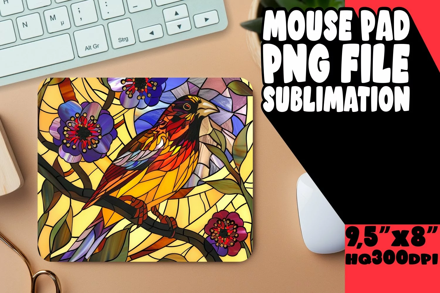 Colorful Bird Mouse Pad Design PNG with Stained Glass example image 1