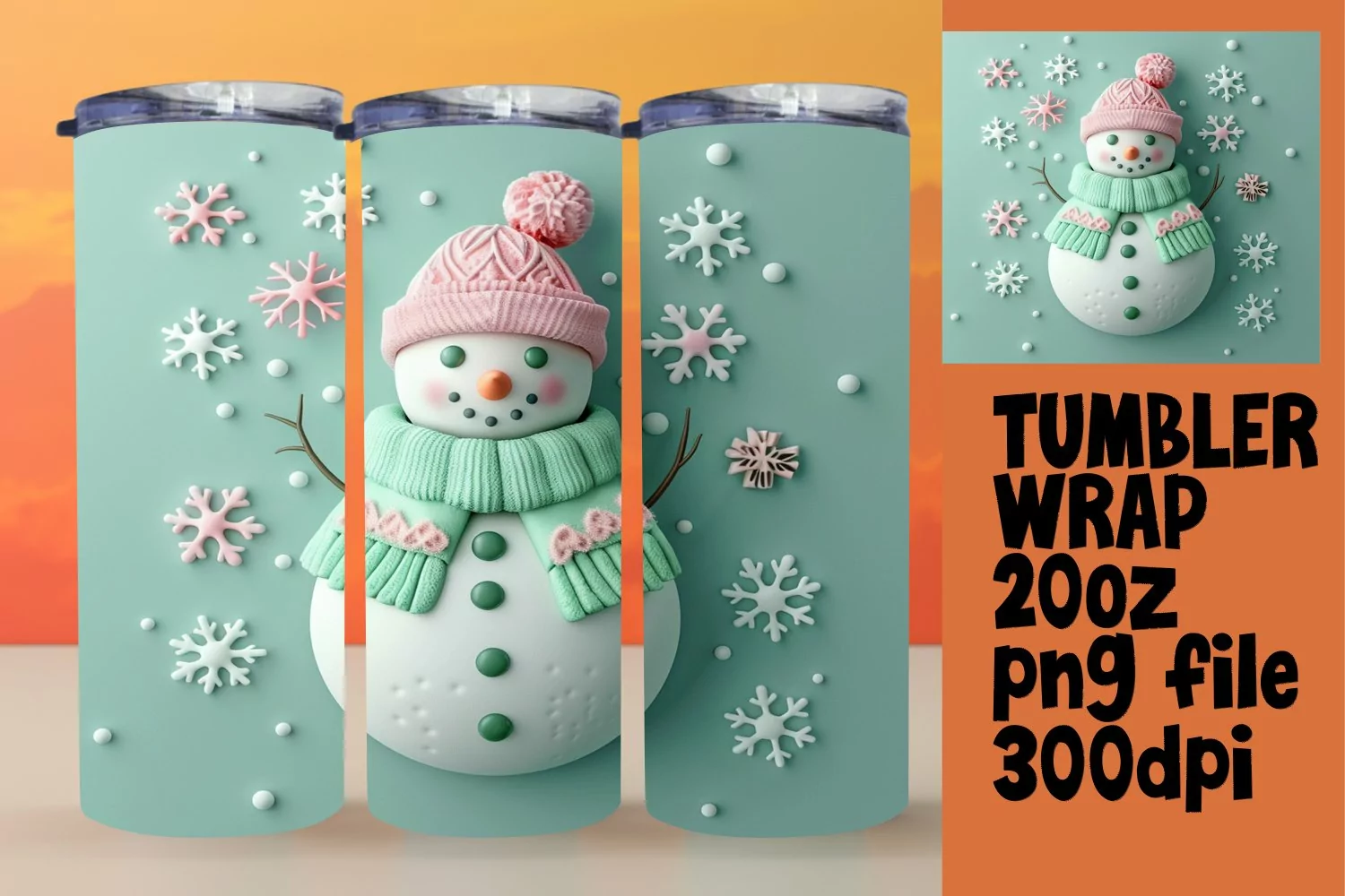 Snowman 3D Design Tumbler Wrap Winter Holidays example image 1