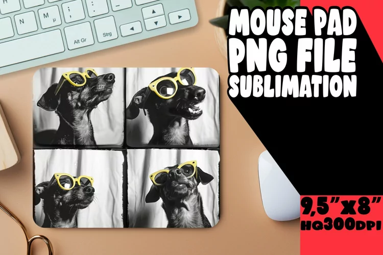 Whimsical Dog Picture Sublimation Mouse Pad Template for Pri