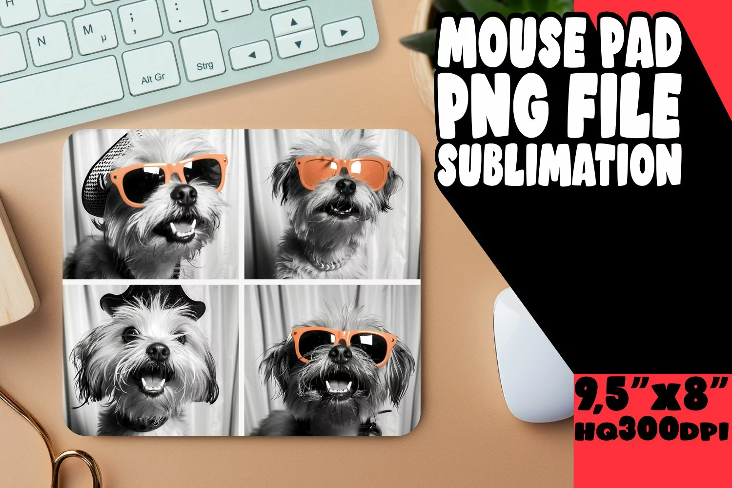 Delightful Puppy Picture Sublimation Mouse Pad Template for example image 1