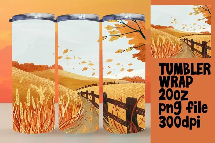 Watercolor Fall Landscape Tumbler Wrap | 20oz Design