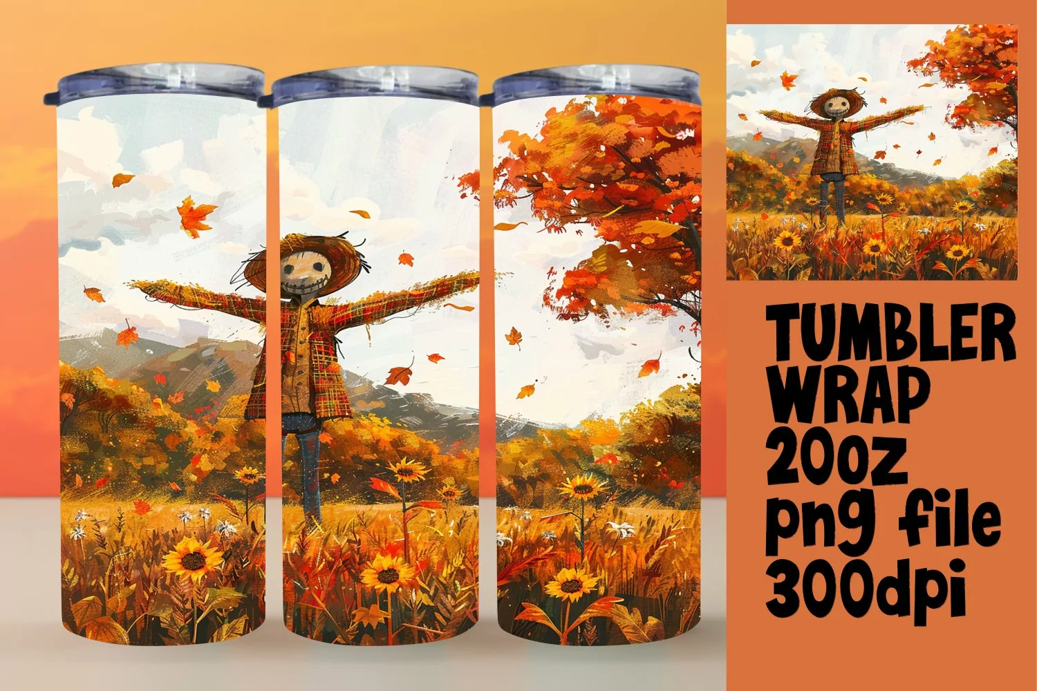 20oz Tumbler Wrap | Autumn Watercolor Sublimation Art