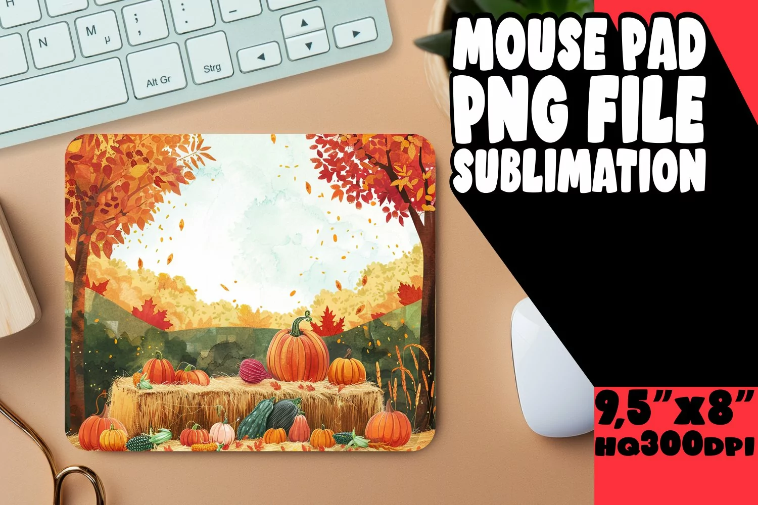 Autumn Watercolor Mouse Pad Sublimation Design
