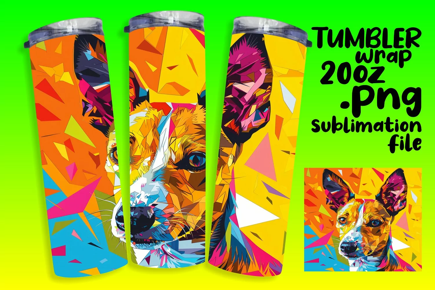 Bright Abstract Dog Pattern Tumbler Wrap 20oz example image 1