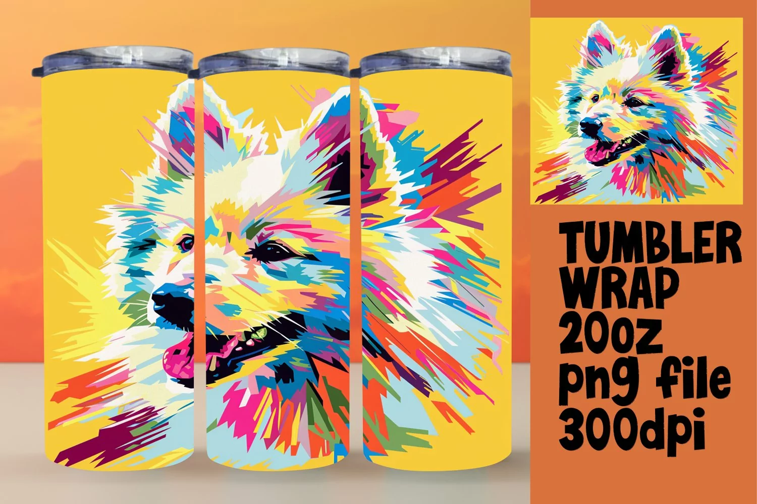 Vivid Abstract Dog Tumbler Wrap 20oz Sublimation example image 1