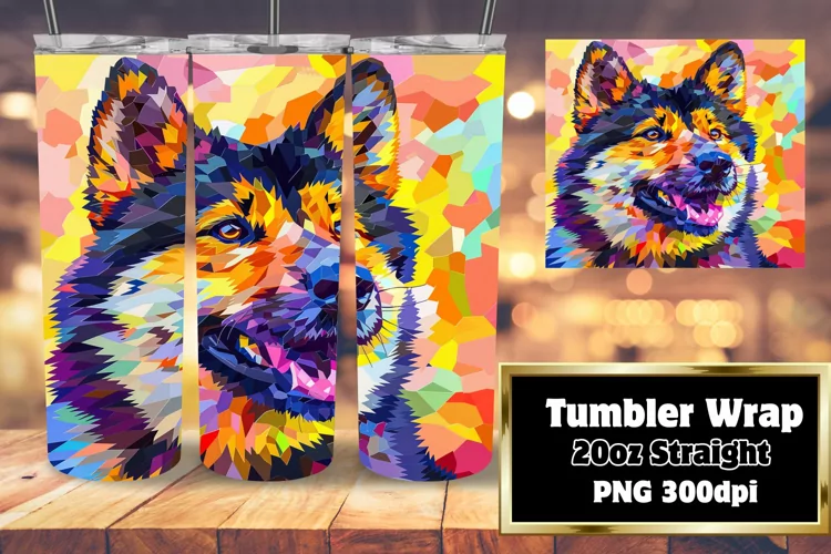 Whimsical Colorful Dog Tumbler Wrap 20oz Sublimation